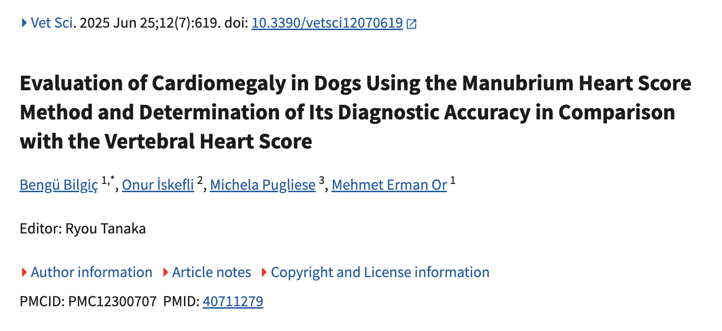 - 背景:犬の心拡大評価では VHS が広く使われているが、犬種差・体格差・撮影体位の影響が大きい。MHS は胸骨柄(manubrium sterni)の長さを基準に心臓影を評価する新手法であり、より一貫性のある指標になる可能性がある。