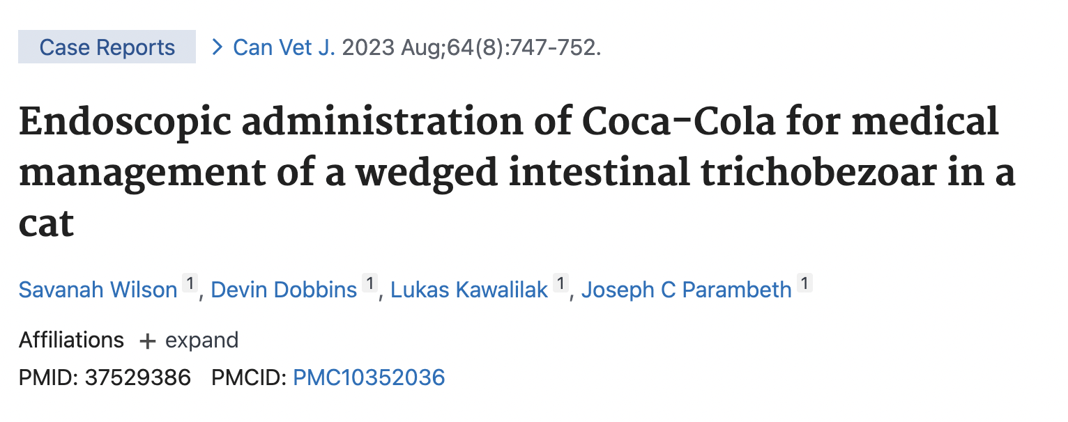 炭酸によって毛球の繊維をほぐす効果があったのではないかと考察されていますが