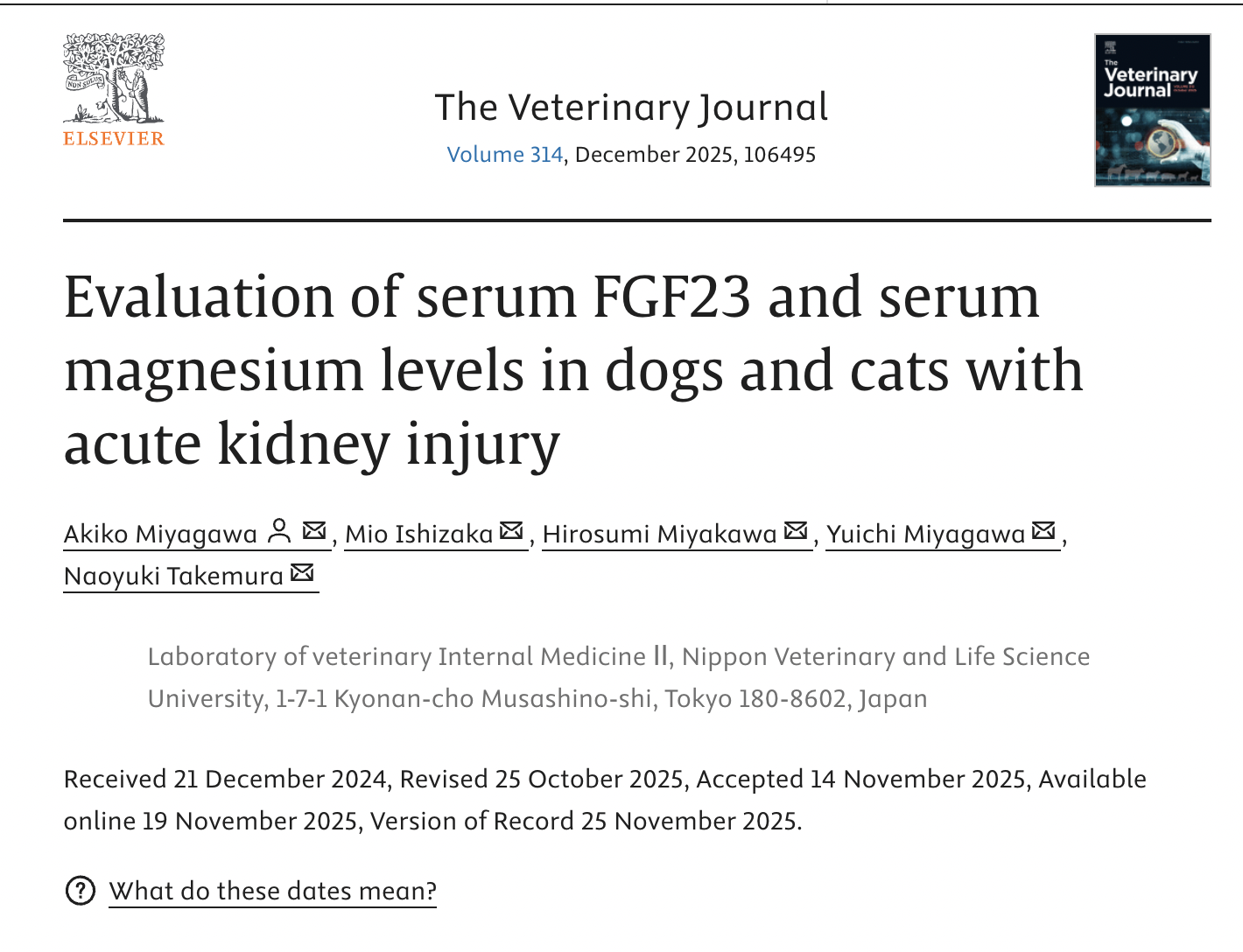 犬と猫の急性腎障害(AKI)におけるFGF-23 とマグネシウムの変動:初の報告