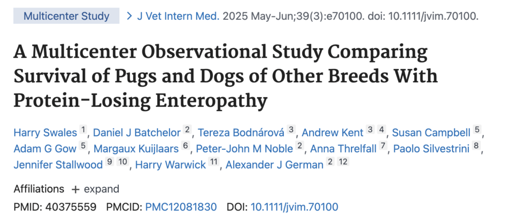 イギリス国内では、パグさんの蛋白漏出性腸症の予後が悪いことが報告されております↓